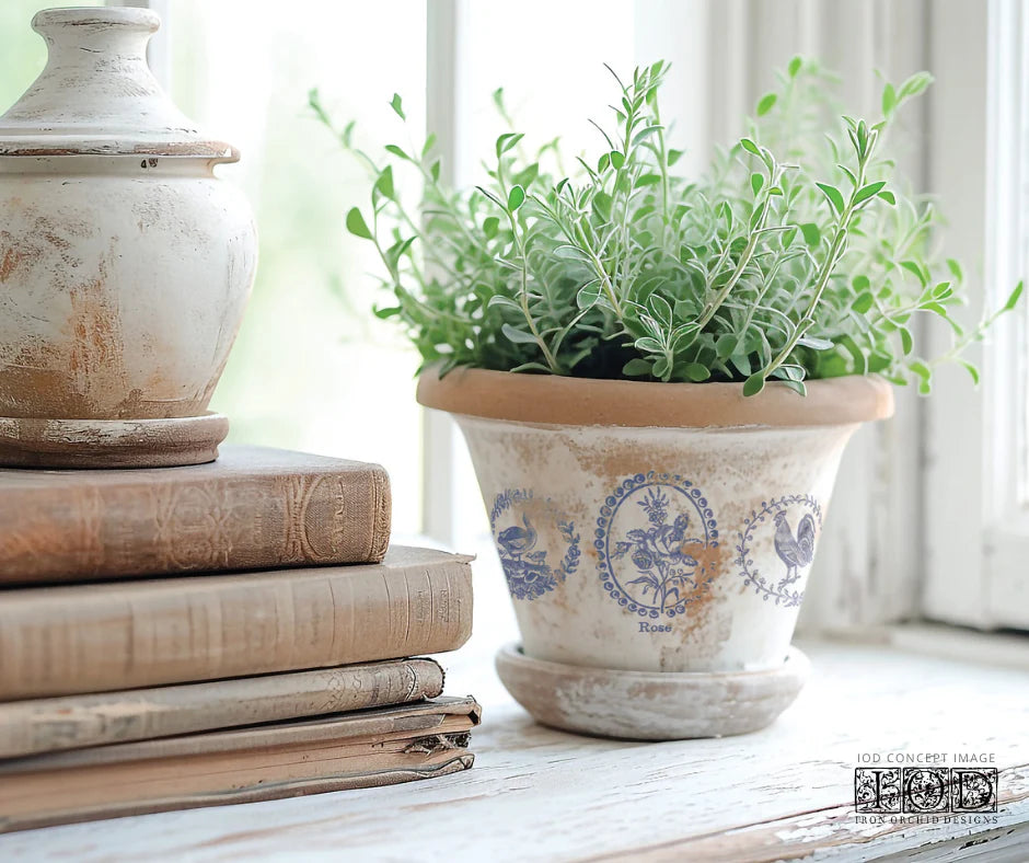 IOD Paint Inlays are the artisanal answer to decor transfers. IOD Paint Inlays are not a transfer, decal, synthetic film or decoupage. IOD's patented Paint Inlays are a brand-new product line exclusive only to Iron Orchid Designs. When you apply an IOD Paint Inlay, artisanal paint is embedded into your surface, the paper removed, leaving an authentic painted design and a buttery, almost leather-like surface on your piece.