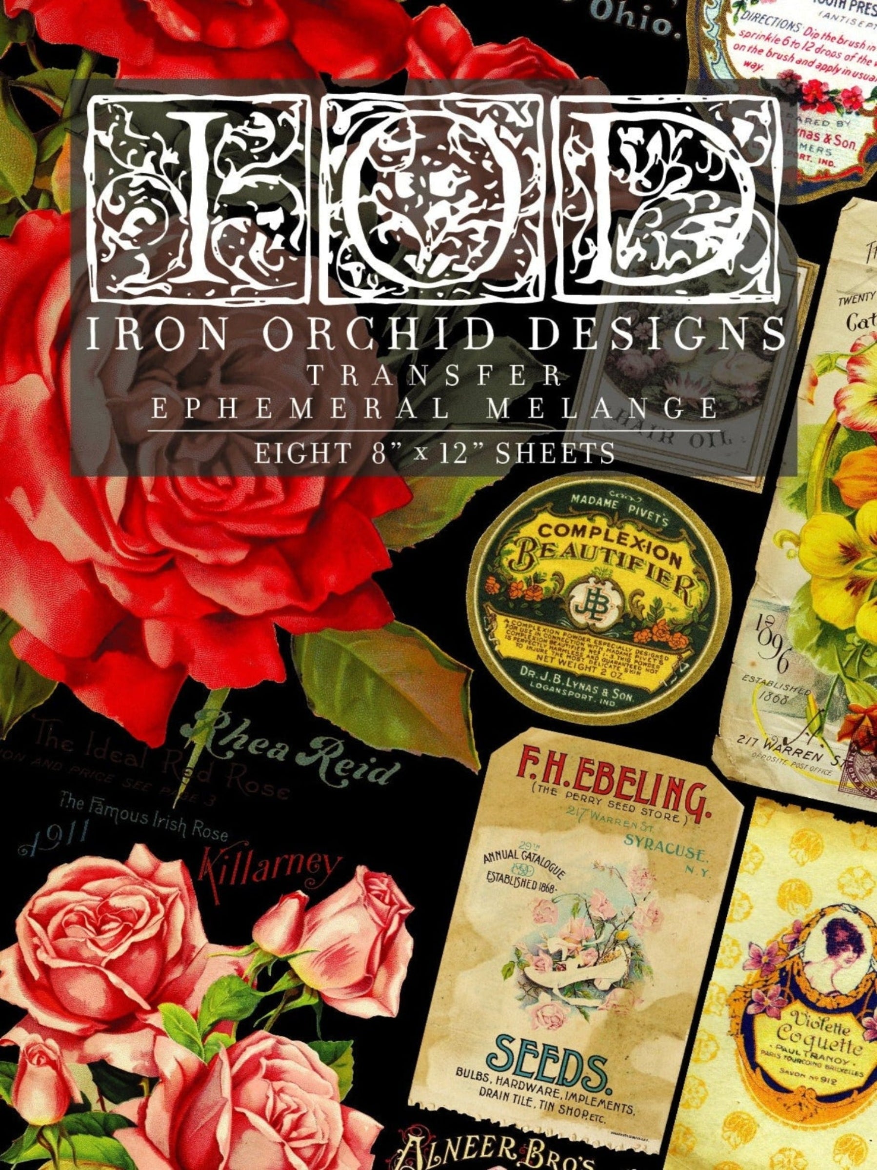 IOD Ephemeral Melange Decor Transfer Set (pad of eight 8"x 12" sheets) by IOD - Iron Orchid Designs.