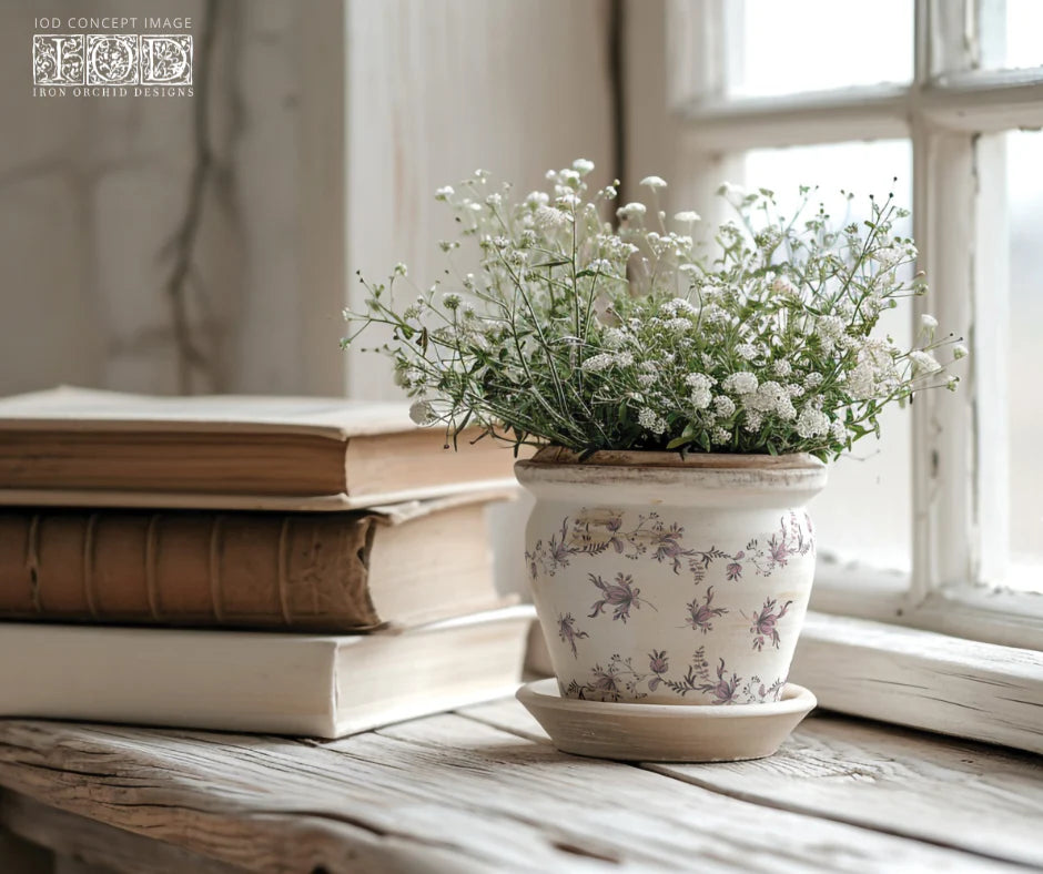 This high-quality rub-on transfer with non-stick carrier sheet comes in a 8x12-inch pad with eight sheets. IOD transfers are quite versatile and can be stunning on large furniture pieces as well as DIY wall art, textiles, home accessories and decor! Use on walls, painted furniture, and other DIY projects to give give a different feel.