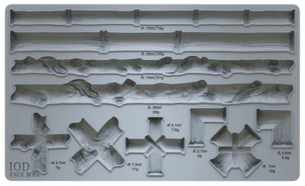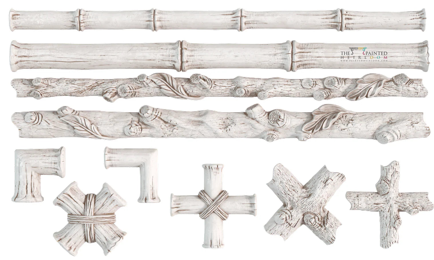 Introducing the IOD Faux Bois Mould, a nod to the timeless appeal of bamboo trim and accents, now reimagined for contemporary and classic design schemes alike. This collection features nature-inspired elements for frames, mirrors, and furniture panels, with corners and cross pieces for creating detailed grids or frames. It's the perfect touch for furniture accents, ensuring seamless joins with a natural look.
