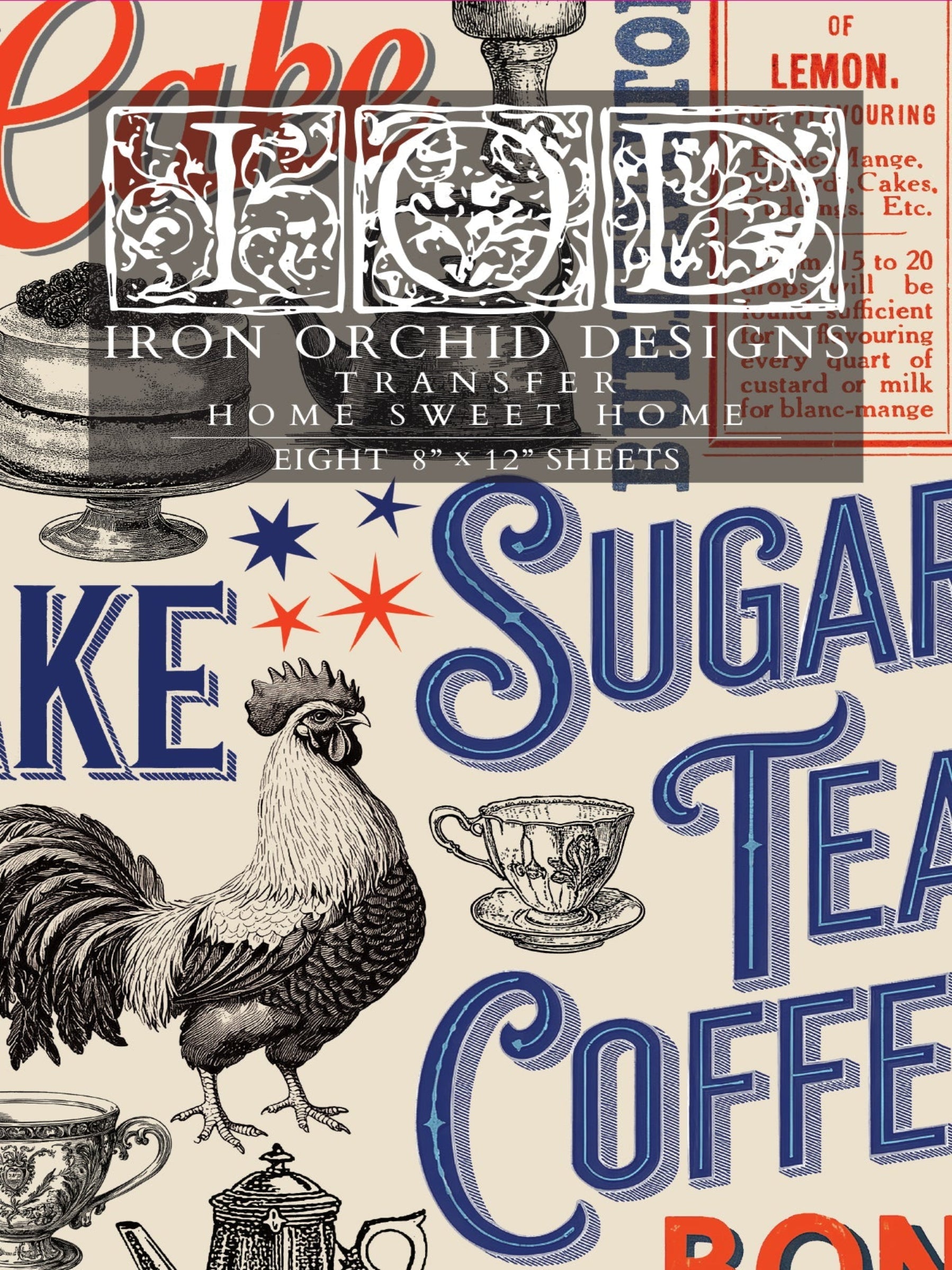 The IOD Home Sweet Home Transfer by Iron Orchid Designs is perfect for labeling ceramic canisters filled with sugar, rice, or coffee. These vintage advertisements would be so charming on vintage kitchen canisters, reloved cookbooks, or gift tins filled with homemade baked goods. 🥰