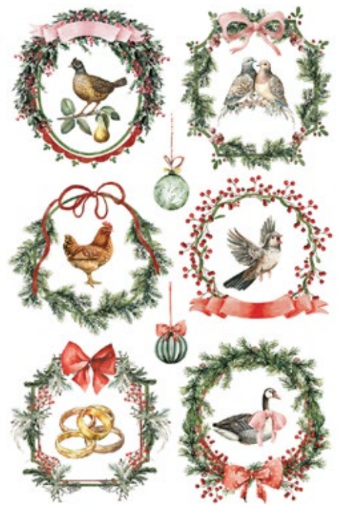 Use Partridge Lane to create darling wall art, upcycle ceramic ornaments for a vintage 12 Days of Christmas collection, or turn plain baubles into an entire set of ornaments with pretty wreaths and painterly details. Dress up cookie tins for hostess gifts or use the sweet details on wood blanks and wreaths.