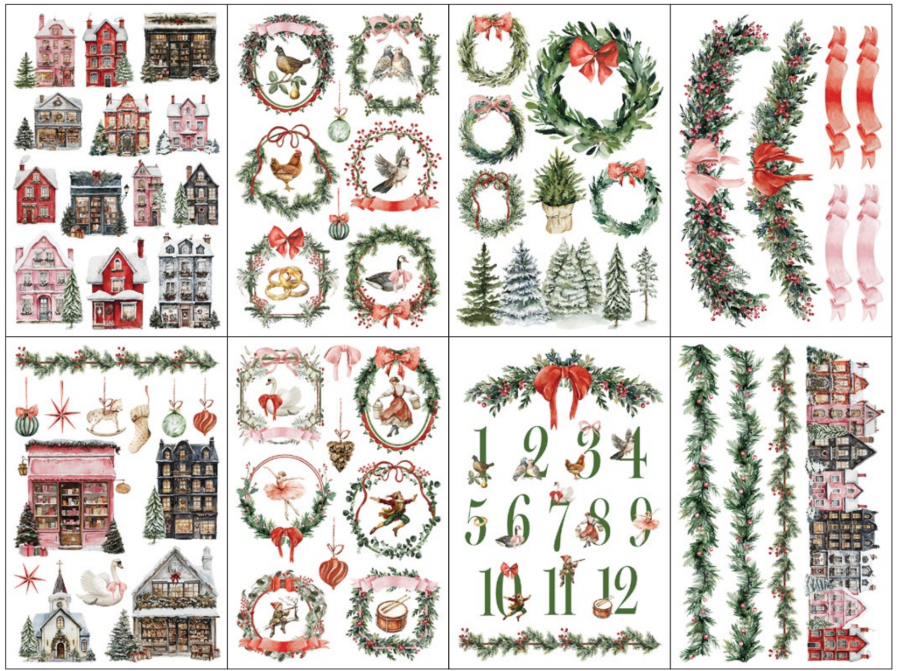 Step onto Partridge Lane, where fluttery bows, cheerful wreaths, and dainty Christmas cottages come together with painterly charm and a wink of whimsy. This delightful transfer is for the maker who likes a little quirk in their craft, storybook sweetness, and a whole lot of holiday cheer.