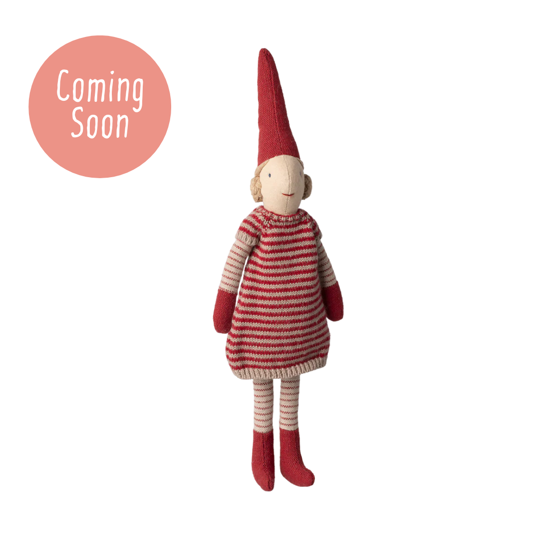 Mailegs pixy collection contains many different styles - all dressed up in nice Christmas clothes made of exclusive materials. They are adorable and can be mixed and matched across sizes and collections. Size 1 has magnet in hands and left foot.