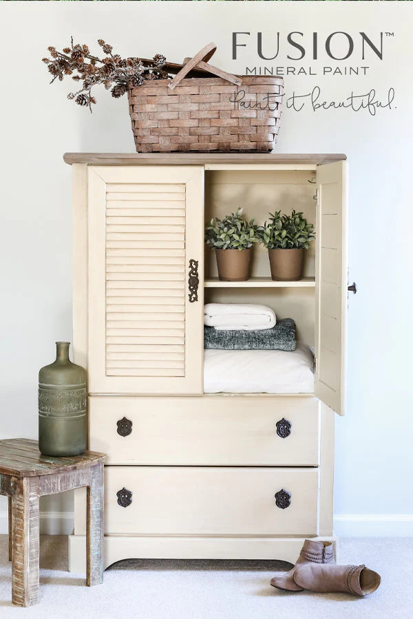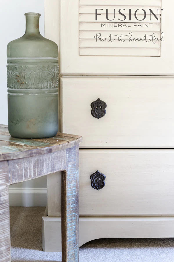 Note: Priming is usually not necessary with Fusion Mineral Paint. For bleed-through or knots, use Zinsser BIN Shellac-based primer. For dark-to-white transitions, use a mid-tone colour like Sterling as a primer.
