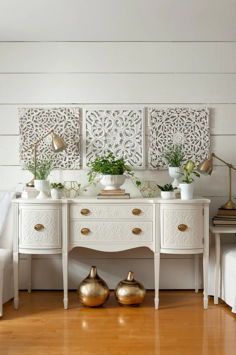Note: Priming is usually not necessary with Fusion Mineral Paint. For bleed-through or knots, use Zinsser BIN Shellac-based primer. For dark-to-white transitions, use a mid-tone colour like Sterling as a primer.