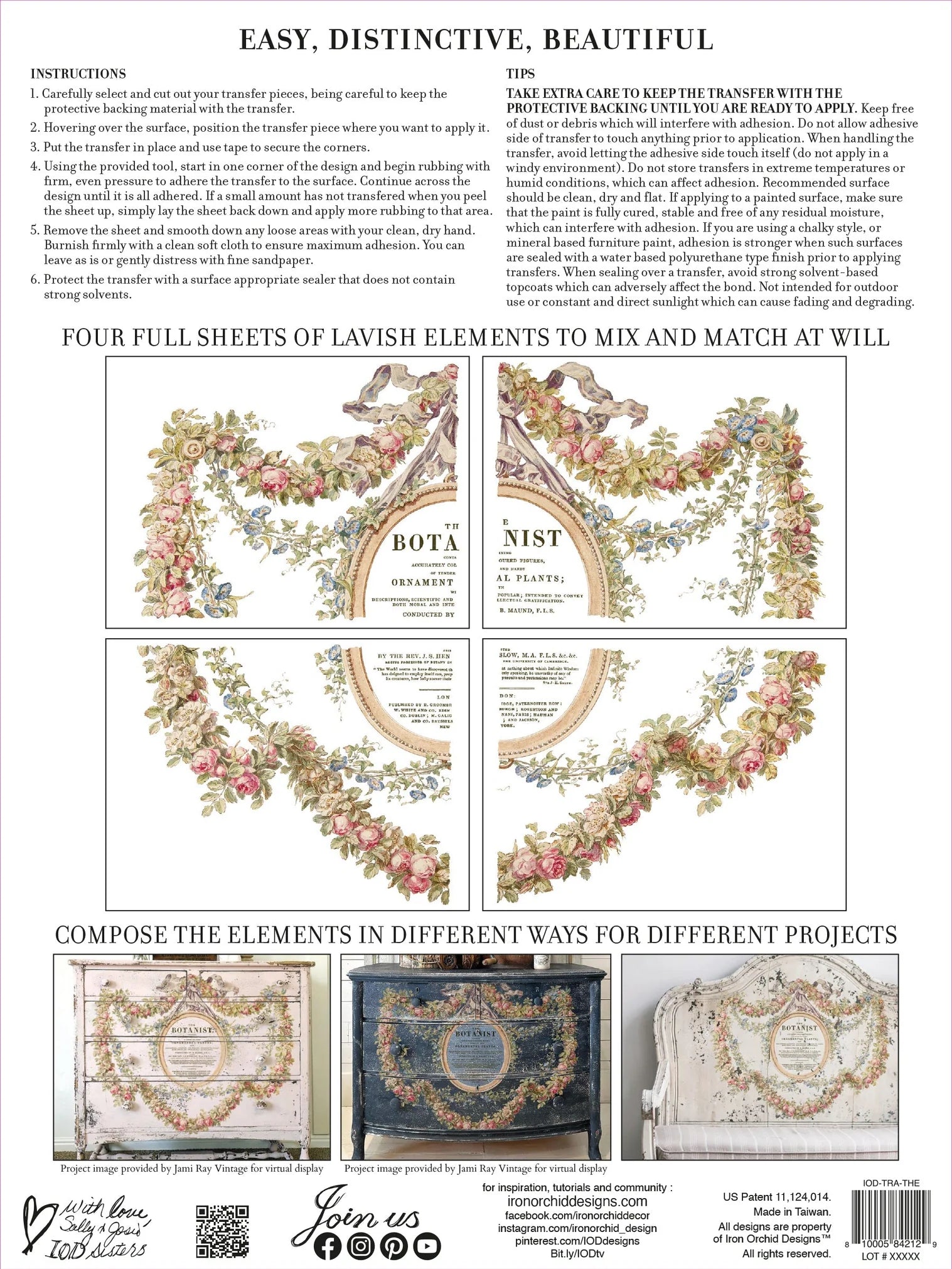 IOD The Botanist (pad of four 12"x16" sheets) by IOD - Iron Orchid Designs. Four cuttable sheets with with a garland like flower arrangement consisting of a band of foliage and flowers, with accompanying signage.