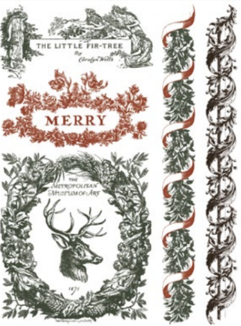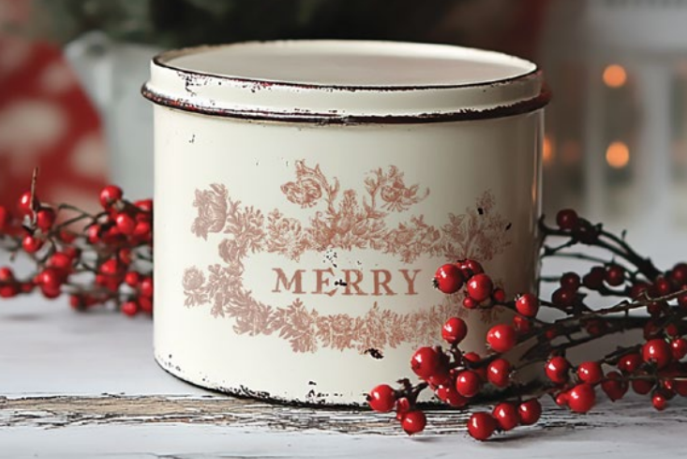 Use Twelfth Night to dress up plain canvas stockings with beautiful vintage art and hang them from gold hooks on the mantle. Welcome French cottage charm into your home with festive engravings on a tree collar or wall plaque. Thrift flip porcelain plates to display in a dining hutch during Christmas gatherings.